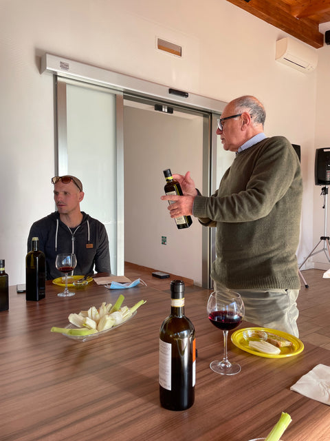 Sredi sejne sobe v oljarni smo ob rdečem vinu olje dobesedno polivali čez svež koromač in bruskete. Tistega okusa svežega olja… tega se ne da pozabiti. Takrat sem prvič razumel, kaj v resnici pomeni kakovostno ekstra deviško olivno olje – in zakaj skoraj nič od tega, kar imamo na trgovinskih policah, temu sploh ni podobno.